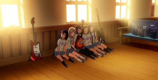 初识轻音,源于偶然,那时我看了不少芳文社的作品,从《new game》到《摇曳露营》再到《点兔》当然还有很多这里里就不一一列举了。芳文社的作品大都是描写轻松的日常,没有老虚,主角也无一例外都是女孩子。剧情一般都是轻松治愈的(《学园孤岛》除外),每次都是通过温馨的日常来向我们传递着正能量。轻音少女就是我偶然在找芳文社作品时找到的,说实话,刚开始看到封面和标题我并不怎么看好这部番剧,以为是讲音方面的内容,但是我看到B站9.9的评分时,还是决定看下去,直到全部看完,我才意识到自己当初的想法大错特错。