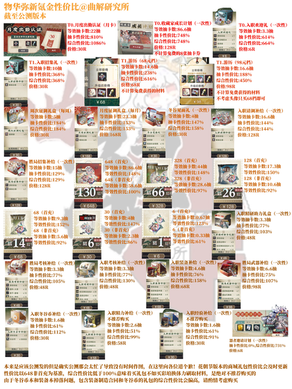 【曲解研究所】出品 物华弥新公测礼包性价比一览 统计/计算/制图:云肆锦