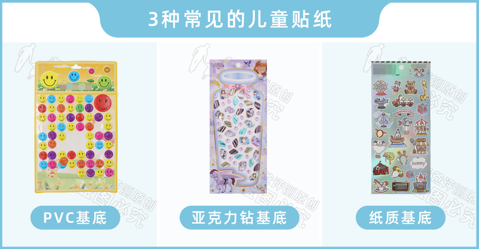 再来看看儿童贴纸。市面上的儿童贴纸一般有PVC基底、亚克力钻基底和纸质基底三种。