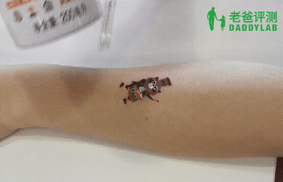 贴在皮肤上已经存在风险,还怎么放心让孩子贴着它们一周?而且自然脱落的过程中,难保这些贴纸的碎屑会掉落在哪里,很可能会被孩子吃进肚子里。