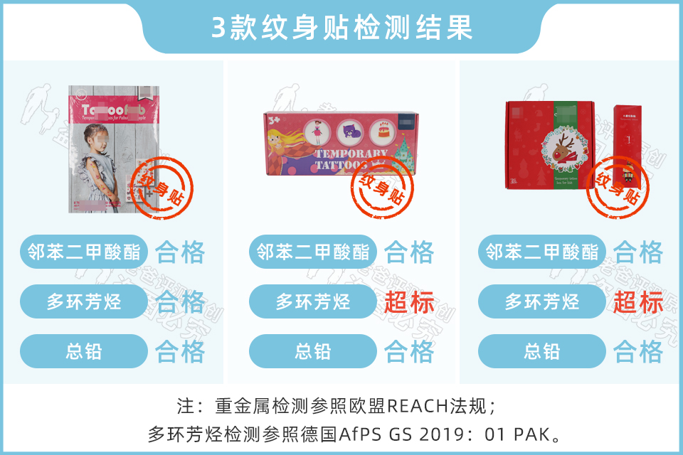 有 2 款儿童纹身贴测出了多环芳烃超标,其他均未检出。