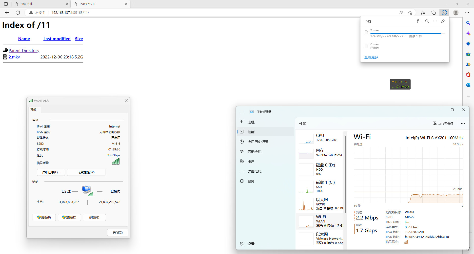 通过无线下载HTTP服务器文件,大约1.7G