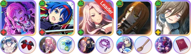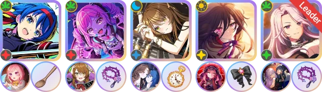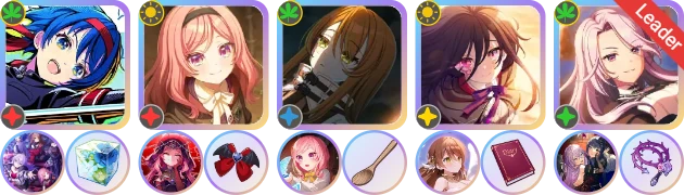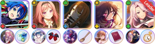 ②3轴相对靠前,可用【彩】万容充条;1、2轴一般选择同为红光的仁花子和时雨;由于饰品位紧张,单条卡充条不够快,一般至少还需一张副条卡,推荐1轴带【彩】仁花子,2轴带【阳】时雨。