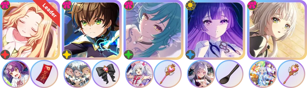 2、SA次数:1、2、3号位4个光,4号位5个光且轴最靠前,非瞬爆5开需至少5个初始光,可用新联动海报暴虐+伊吕波生日饰品2+3凑齐5个初始光,无暴虐的5开法有 漂流 + 音击联动 > 漂流 + 伊吕波生日 瞬爆,用音击联动以外的1SP光海报5开可能不如瞬爆。