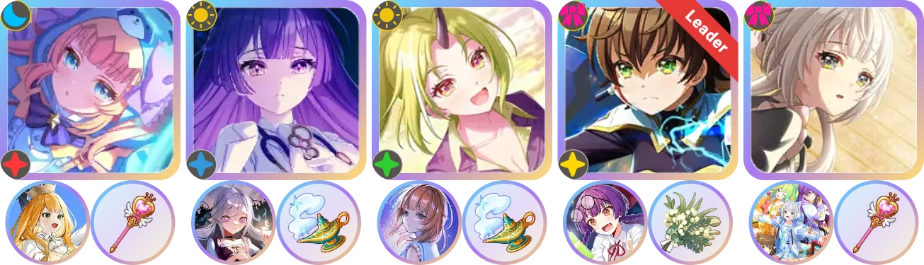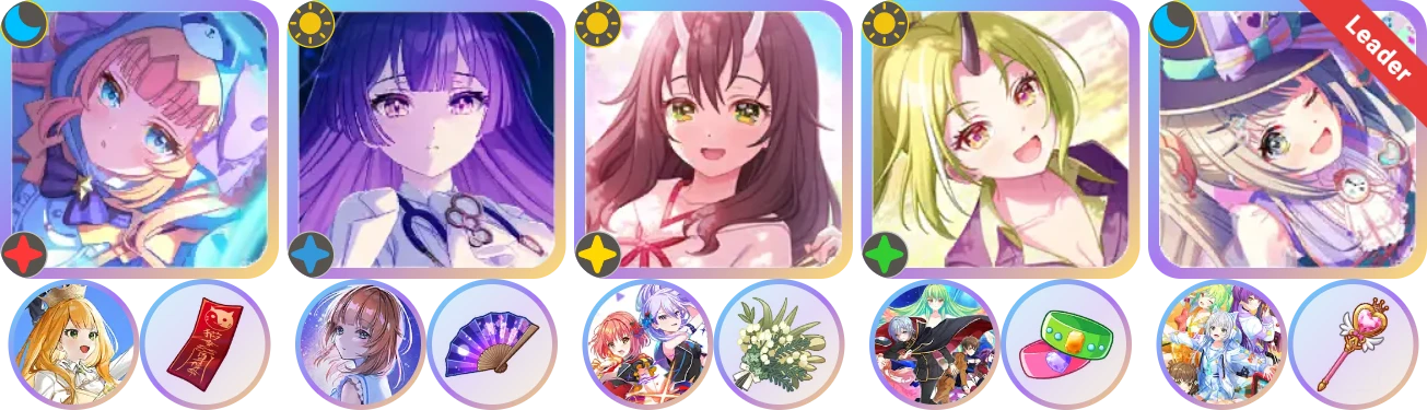 1、队长,缺【凛】伊吕波和【彩】叶羽时,下位替代以SA次数高优先,首选【怜2】美兔或【阳】卡米拉做队长5轴+伊吕波生日5开;无生日饰品,可选【怜】叶羽或【彩】卡米拉带浮士德、大明星或SR加光4开,都没有则需要有初始光才能3开。