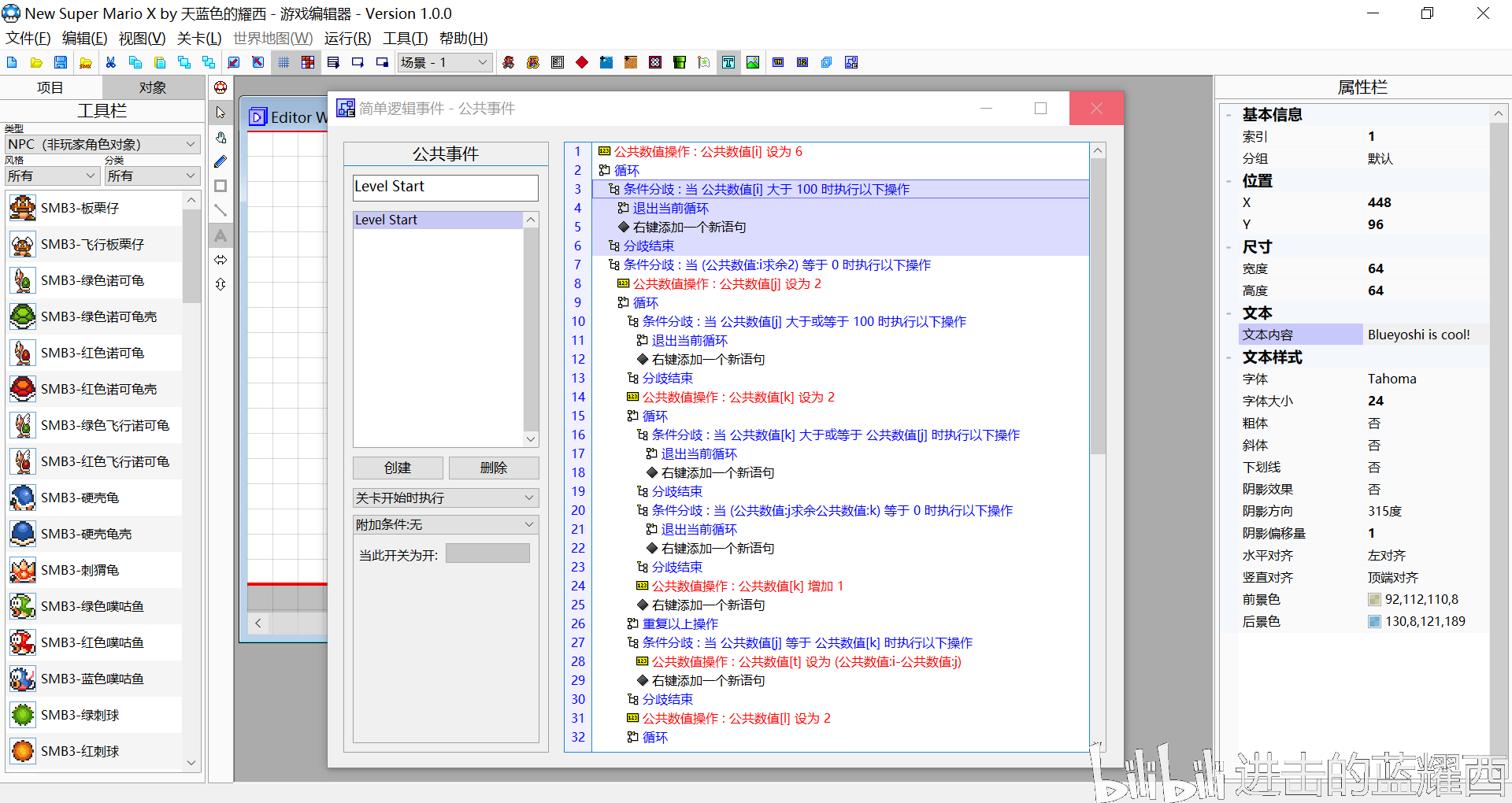 在高二学业比较稳定的时候,我对游戏引擎产生了浓厚的兴趣,决定使用VB编写一个类似MMF的游戏引擎。于是NSMX(新超级马里奥之未知世界)计划就这样诞生了。NSMX的目的是以马里奥作为承载形式,练习游戏引擎的开发。在编写NSMX期间,UP逐渐摸索出了关键的游戏引擎的技术(碰撞检测、四叉树、R树等等),TC使用的游戏引擎技术便是由这个项目积累起来的。