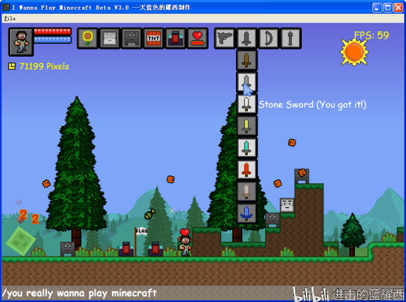 大二下学期,UP重新写了一遍TC代码,并使用《泰拉瑞亚》和《星界边境》的细粒度风格绘制素材,加入了大量MC怪物。